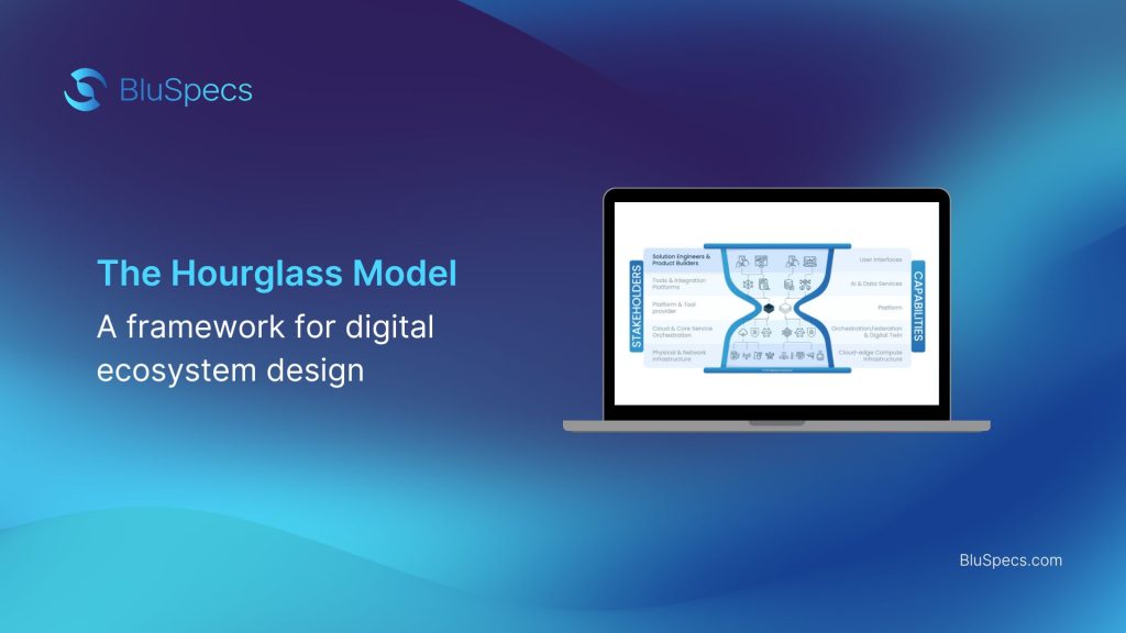 The Hourglass Model is a conceptual framework that illustrates how stakeholders and capabilities interact across the layers of a digital ecosystem.