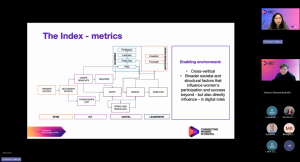 A key component is the Enabling Environment, which tracks structural and societal factors influencing women’s success in digital roles.