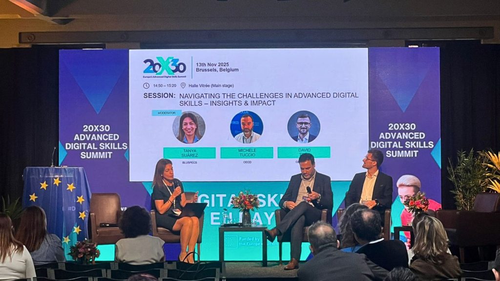 At the Digital Skills EU Days 2025, the panel “Navigating the challenges in advanced digital skills | Insights & impact” moderated by our Founder & CEO Tanya Suárez with Michele Tuccio from OECD and David Timis from Generation, offered a counter-intuitive, human-centered roadmap for navigating these changes.