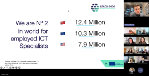 Opening the webinar, Brendan Rowan, our managing consultant and coordinator of LEADSx2030 set the scene with a data-driven overview of Europe’s ICT workforce. Since 2011, the EU has nearly doubled its ICT workforce, making it the second largest globally. Yet under the Digital Decade targets, Europe aims to reach 20 million ICT specialists by 2030 a goal that, at the current pace, would not be met until 2051.