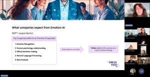 The project offers a double-degree Master’s programme with a specialisation in Emotion AI, alongside modular options for upskilling and reskilling professionals. What sets EMAI4EU apart is its evidence-based “backward design” approach: market needs are identified first, translated into measurable learning outcomes, and only then used to shape curricula.